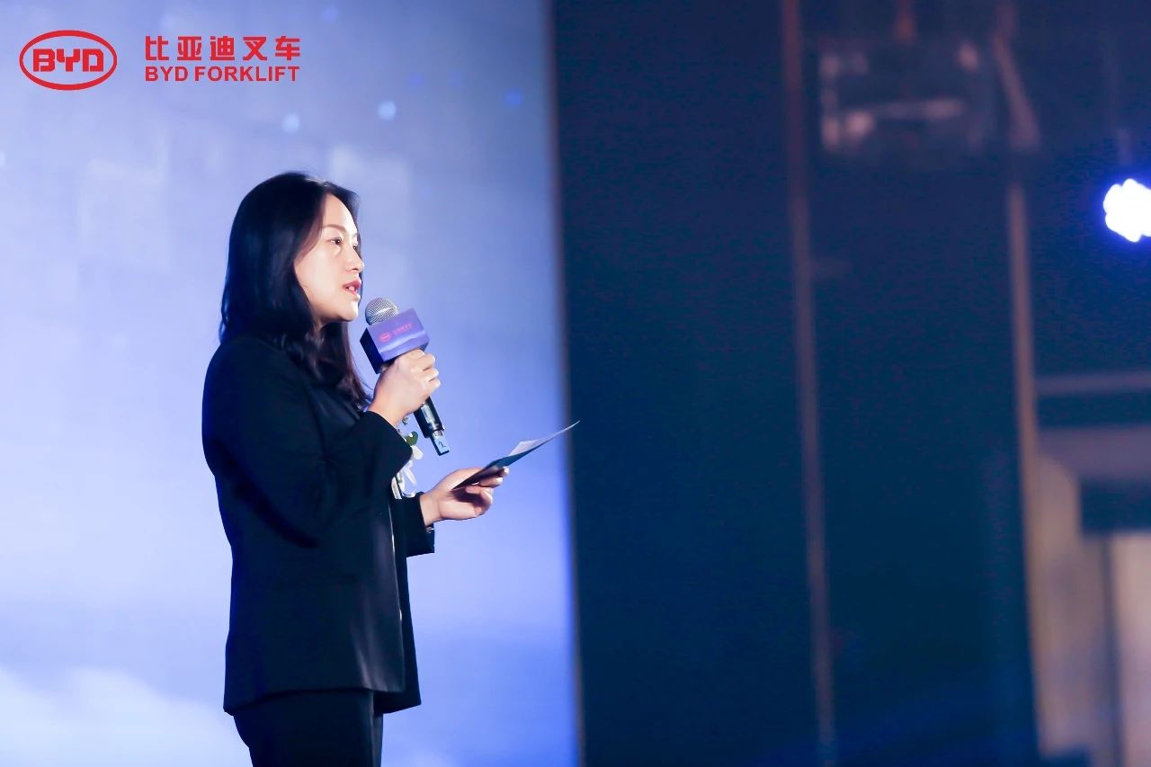 大會(huì)現(xiàn)場(chǎng)“高朋滿座,濟(jì)濟(jì)一堂”,比亞迪叉車國(guó)內(nèi)銷售總監(jiān)陳麗萍女士首先向在座來賓致歡迎辭。