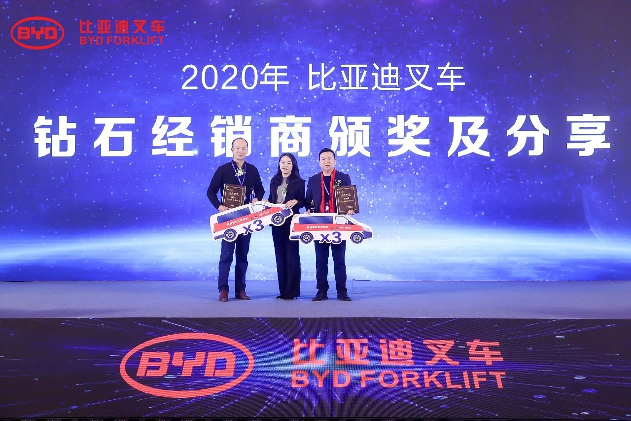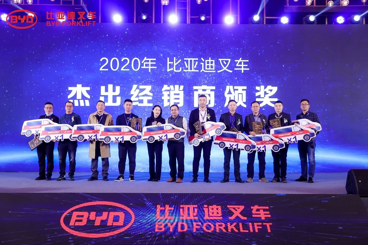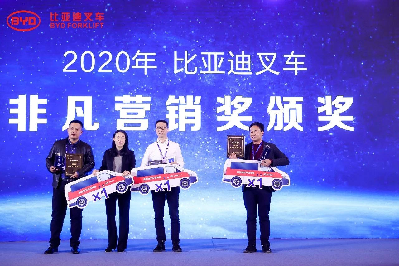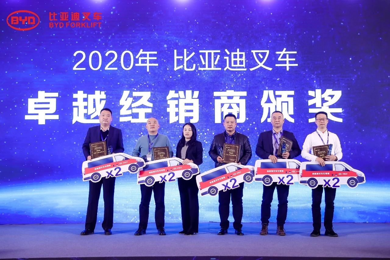 大會(huì)同時(shí)頒發(fā)了非凡營(yíng)銷獎(jiǎng)、卓越經(jīng)銷商獎(jiǎng)項(xiàng),也對(duì)在2020年銷售業(yè)績(jī)表現(xiàn)突出的經(jīng)銷商進(jìn)行了獎(jiǎng)勵(lì),以感謝他們對(duì)比亞迪叉車發(fā)展做出的杰出貢獻(xiàn)。