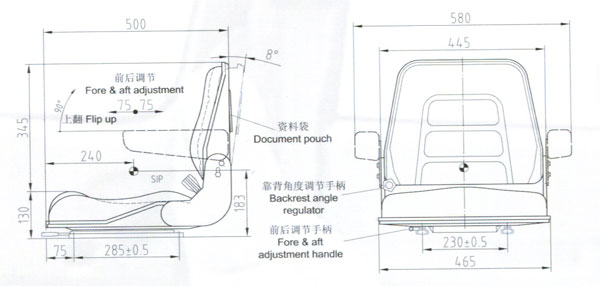 座椅為叉車及其它工業(yè)車輛設(shè)計(jì)的經(jīng)濟(jì)型駕駛員座椅。它沒(méi)有懸浮裝置。但其座背、靠背均采用真空發(fā)泡一次成型技術(shù),便于拆換。