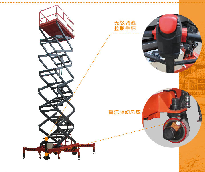 助力行走剪叉式高空作業(yè)平臺(標準型)輔助輪的巧妙設(shè)計有效分擔了驅(qū)動輪的壓力,轉(zhuǎn)向理加靈活;